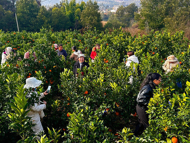 “橙子甜不甜,雨露乡美不美?”……一阵欢声笑语从云南省南华县雨露乡后甸村林果基地里传来,大批游客忙着采摘、品尝。